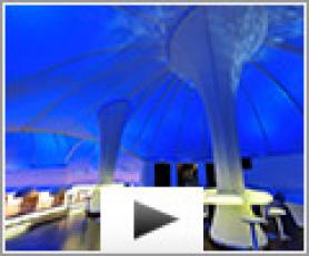 Au centre du bâtiment, le cabinet d'architecte Populous a crée le bar Blueroom et le lounge O2, un espace modulable dédié à la détente. Le dôme en 3D a été entièrement habillé de toile tendue Barrisol Lumière Color®. Le plafond tendu Barrisol Lumière Color® offre une liberté totale pour la création d’ambiances lumineuses sur-mesure en fonction des évènements.