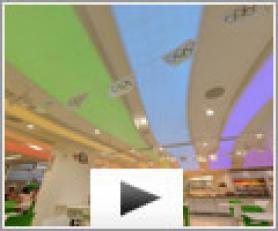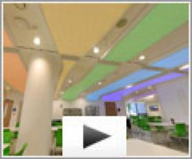 Imaginé par l’architecte Llewelyn Davies Yeang, inspiré par l'univers de Disney, le plafond est recouvert de toile Barrisol® translucide Blanc Venus® associé à la technologie Barrisol® Lumière Color®. Des bandes colorées recouvrent ainsi l’espace (plafond tendu Barrisol®Translucide) pour adoucir l’atmosphère et apporter tous les bienfaits de la chromothérapie.