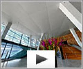 Ce magnifique édifice a été construit au bord du Fjord où il émerge du sol tel un iceberg. Pour sa construction, des matières nobles ont été utilisées dont le plafond tendu acoustique Barrisol Acoustics® sur une surface de 4000 m² pour absorber les résonnances acoustiques et améliorer le confort sonore dans ce bâtiment de 32 mètres de hauteur. Ce centre culturel moderne et original promet d'attirer un large public.