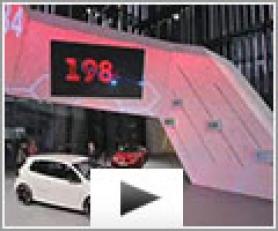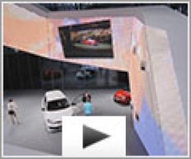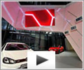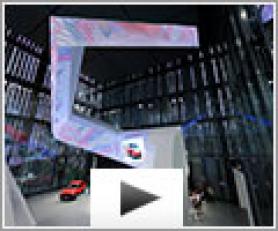 Au cœur du pavillon dédié à la marque Volkswagen, jeux de lumière, projection vidéo animent cette spirale mouvante habillée de toile Barrisol matérialise l'expérience, la dynamique et la vision de la marque automobile.