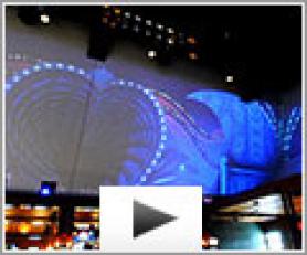 projections and animations. After several performance tests, the Barrisol matte finish in grey, was chosen by the multimedia and projection