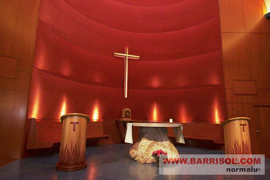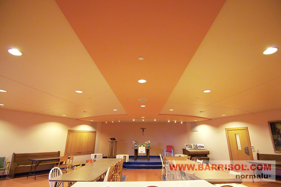 The sound has also been improved by using Barrisol stretch ceilings as wall coverings! An impecable and original look for the congregration in Lennoxville !