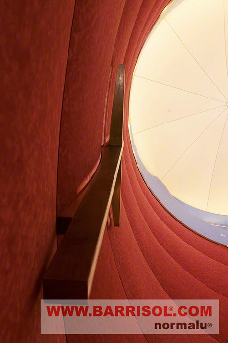 Suede finish in Rouge Passion was used, to create the unique and lively background atmosphere of this particular church. The ceiling is covered in our satin finish, reminding us of the sacred Ostia.