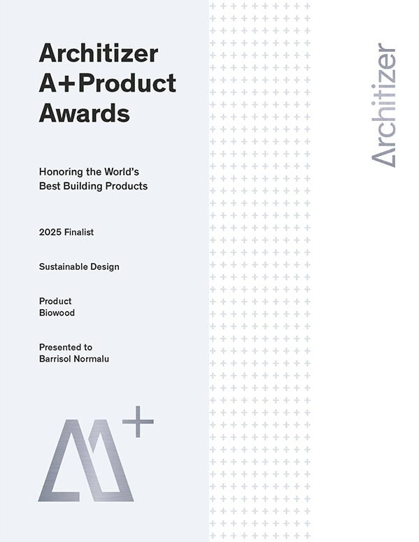 Nous avons l’immense fierté d’annoncer que notre solution Biowood® a été sélectionnée par Architizer comme l’un des meilleurs produits au monde dans le domaine du design durable.