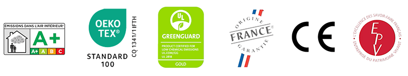 Nos toiles Barrisol Les Biowood® en finition mate et translucide, ainsi que la nouvelle toile Biowood® Reverso en finition mate, disposent des certifications A+ (COV), GreenGuard Gold et désormais la prestigieuse labellisation OEKO-TEX® STANDARD 100 CQ 134 / IFTH.